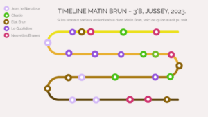 Déroulement de l’activité : En classe, lecture de l’œuvre choisie. Composition de groupes de 3 ou 4 élèves s’attribuant une identité de l’œuvre : Matin brun : le narrateur, Charlie, l’Etat Brun, Les Nouvelles Brunes, Le Quotidien Antigone : Antigone, Créon, Ismène, Hémon, le chœur /le prologue et/ou un garde (une voix populaire qui jettera un regard externe) à décider avec les élèves. 1. Dans les groupes, commencer par faire un point sur la situation initiale du personnage attribué : repérer les éléments connus de son identité dans l’œuvre + ses « actions » principales. 1h brouillon. 2. Chaque groupe travaille au brouillon sur ses projets de publication (en lien étroit avec le texte) : donner vie à chaque identité avec 4-5 publications (minimum), photos (prises au maximum par les élèves eux-mêmes), statuts. Les faire réfléchir à la chronologie de leurs publications. 1h brouillon + 2 à 3h sur écran (création des publications). 3. Travail de mise en commun des publications via un pad partagé (Framapad) avec implication du professeur-documentaliste : demi-groupes pour travailler plus facilement, sur deux salles différentes. Le but est de créer une trame chronologique globale et de vérifier que les publications créées peuvent s’enchaîner de façon logique et se répondre. C’est aussi l’occasion de faire le point sur d’éventuels ajouts à faire. 1h classe. 4. Retour en salle informatique pour compléter les publications ou corriger, le cas échéant, certaines publications. 1h classe (éventuellement). 5. Les élèves font parvenir au professeur les publications numérotées que le professeur installera sur une page interactive genial.ly (avec insertion du texte en lien) avec ou sans l’aide d’un ou plusieurs élèves. |